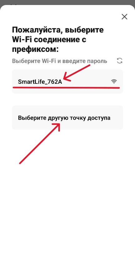 8 Следующим шагом выберите сеть Wi-Fi, которую раздаёт сам повторитель (SmartLife_XXXX).