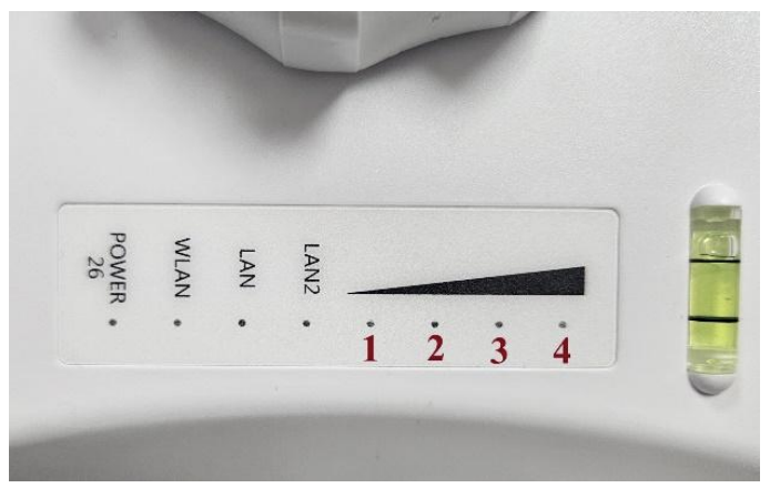 3.5 Проверьте статус индикаторов: при хорошем сигнале на панели должны гореть все четыре ступени приёмного индикатора. Чем меньше горит светодиодов, тем хуже сигнал. Если горит только четвёртый светодиод, это значит, что точки находятся слишком близки, и нужно уменьшить мощность передатчика (это делается через web-интерфейс).